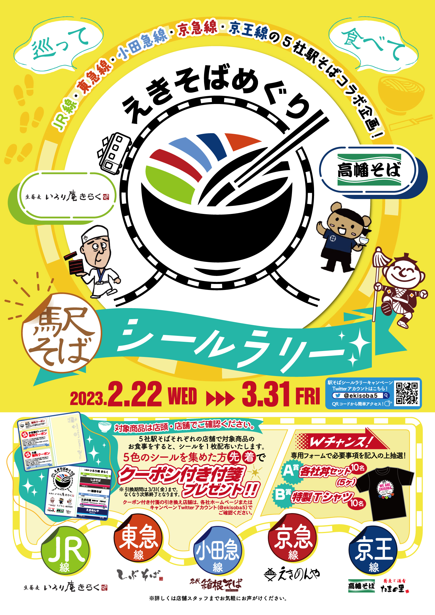 JR、京王、京急、東急、小田急がタッグを組み、それぞれで運営しているえきそばを巡ろうという企画が出来ました!