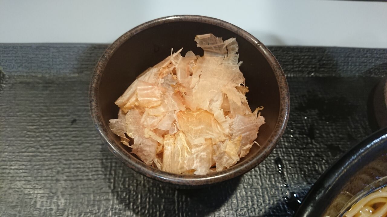 9月よりゆで太郎システムさんの方で新トッピングに加わった「追っかけ鰹節」。