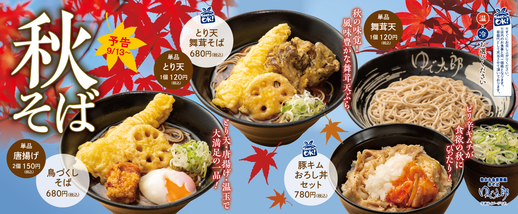 ゆで太郎 メニュー予告信越食品さんも、今月から秋メニューが導入されます。