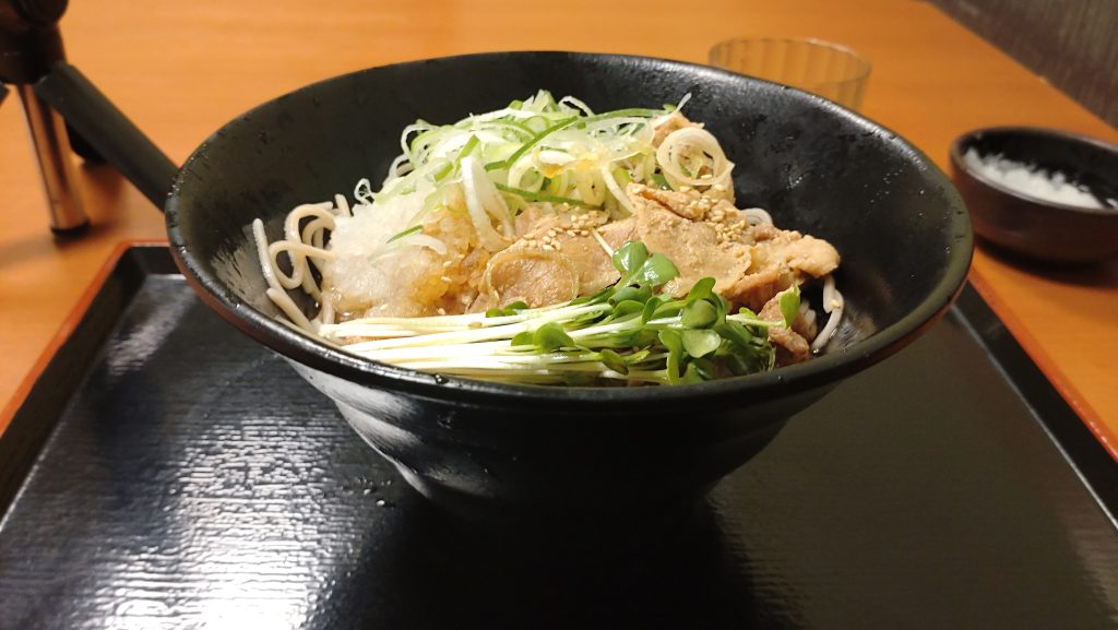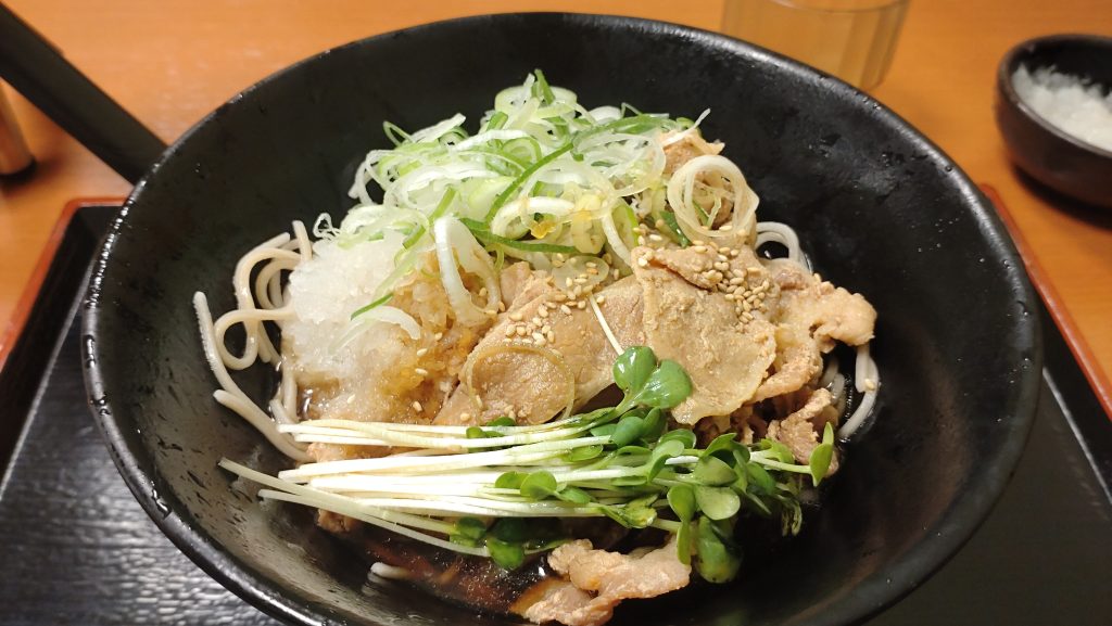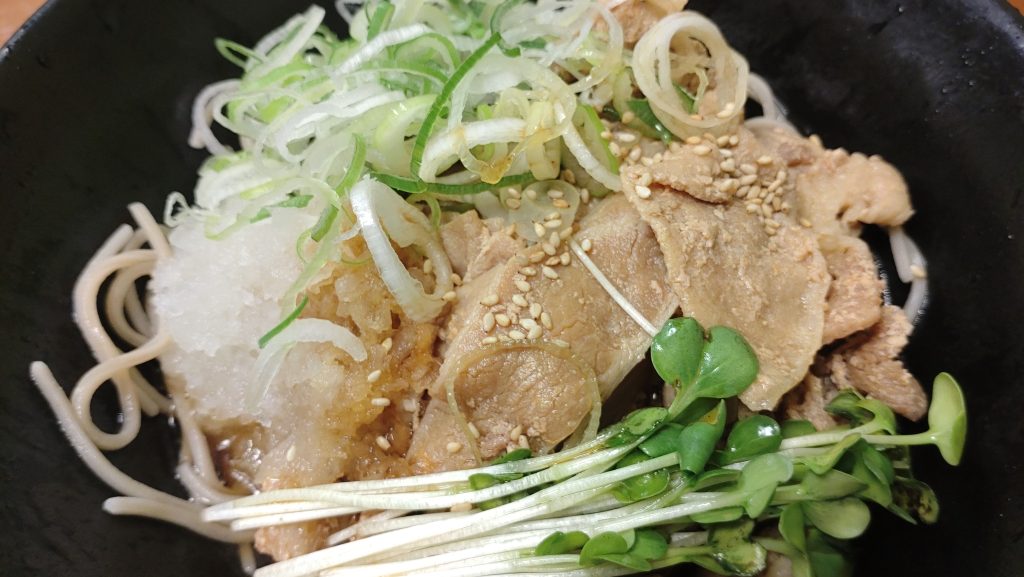 甘辛い豚肉がそばつゆに、旨味をもたらし、おろしとかいわれが肉のしつこさを中和させてくれます。