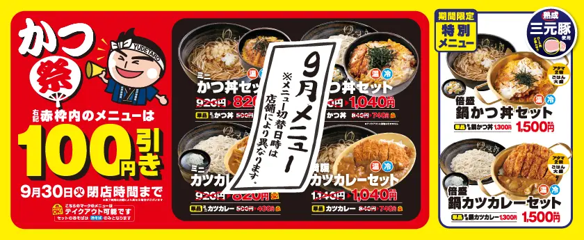 こちらはかつ祭に伴い、提供するメニューが絞られました。