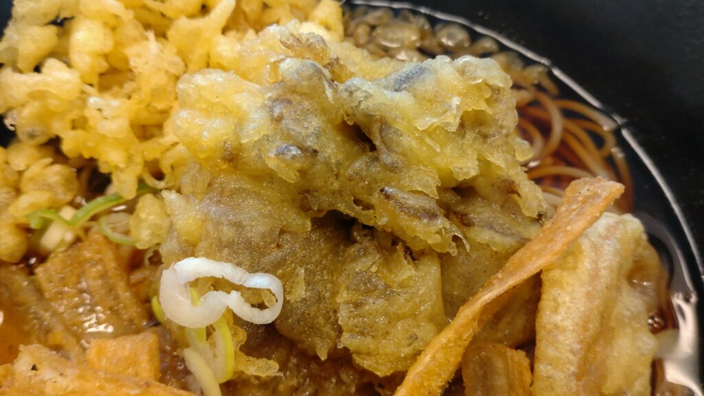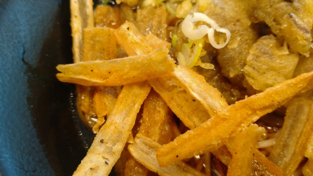 ごぼうチップの存在感がありますが、舞茸天も埋もれているだけで、まあまあの大きさがあります。