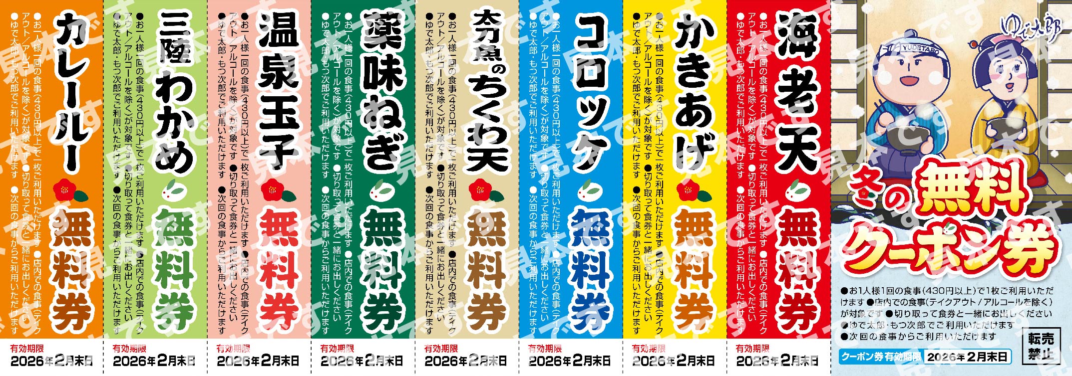 2025年冬クーポン情報解禁! ゆで太郎 クーポン X Facebook はてブ LINE コピー 2025.11.18 ゆで太郎ファンの皆さん、お待たせしました! 寒い冬を乗り切るための最強のお供、ゆで太郎の「冬のクーポン」が12/1に登場です! 12/1からです! 沢山手に入れましょう!