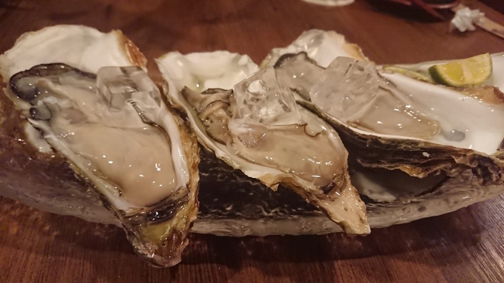 氷が乗っけてあるのが良いアクセント。ヒンヤリとした牡蠣を口いっぱいに入れられる幸せ。